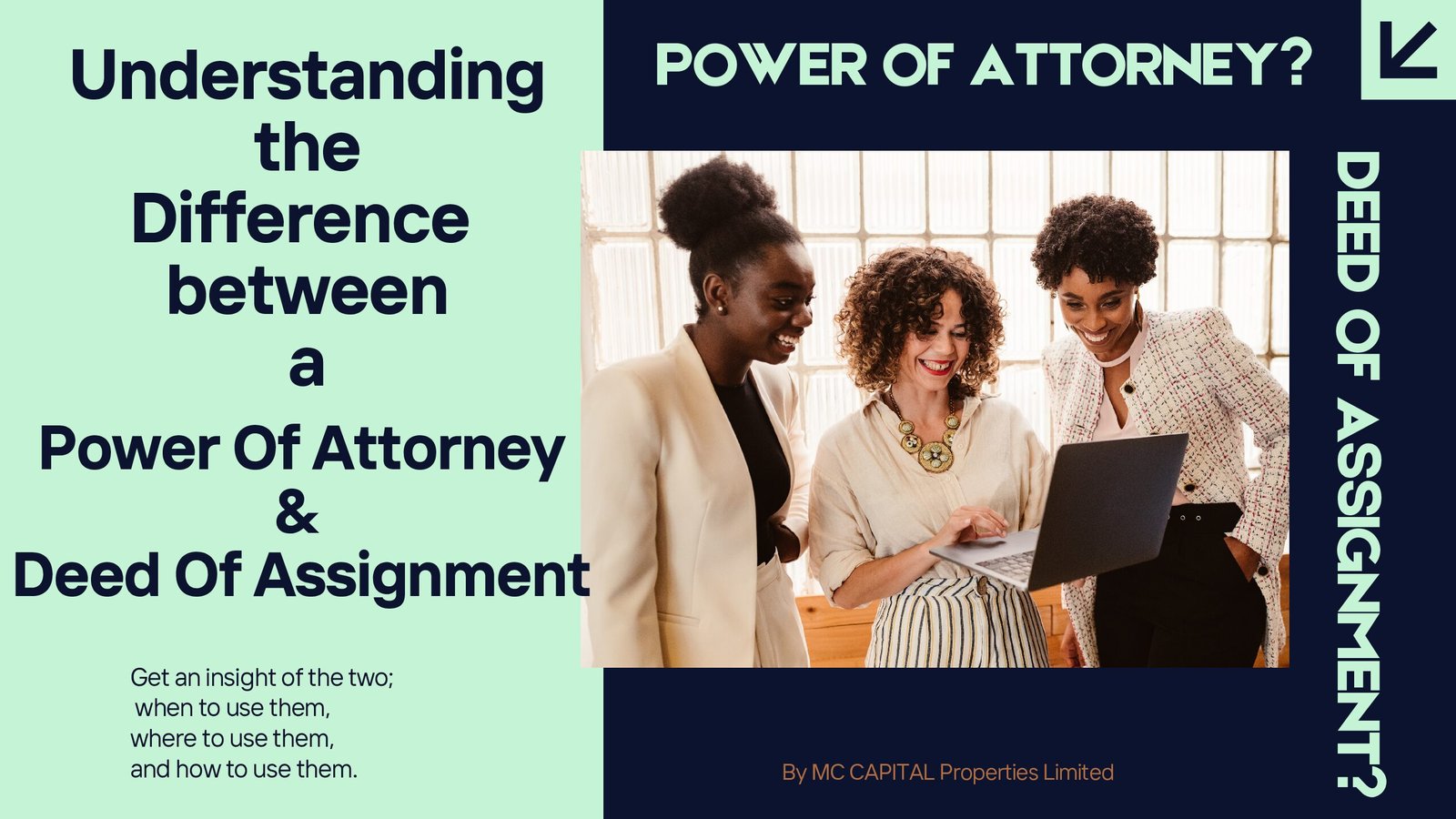 At MC CAPITAL Properties Limited, we believe that informed clients make better property decisions. One of the most common areas of confusion in real estate transactions is the difference between a Deed of Assignment and a Power of Attorney (POA).